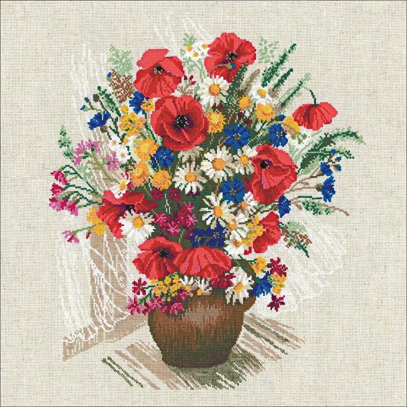 - Fabric, presorted threads, needle, colour chart and complete instructions.