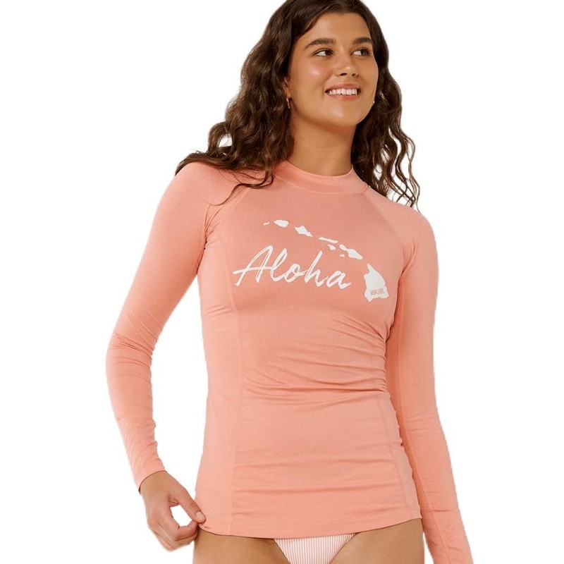 Rip Curl Women's Standard Island Relaxed Long Sleeve Rashguard, Dusty Rose