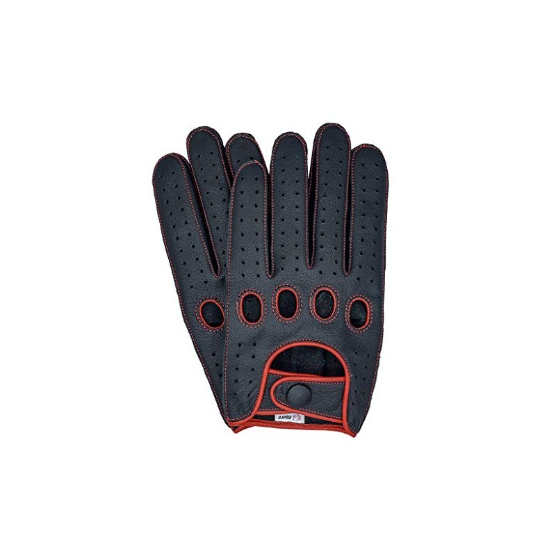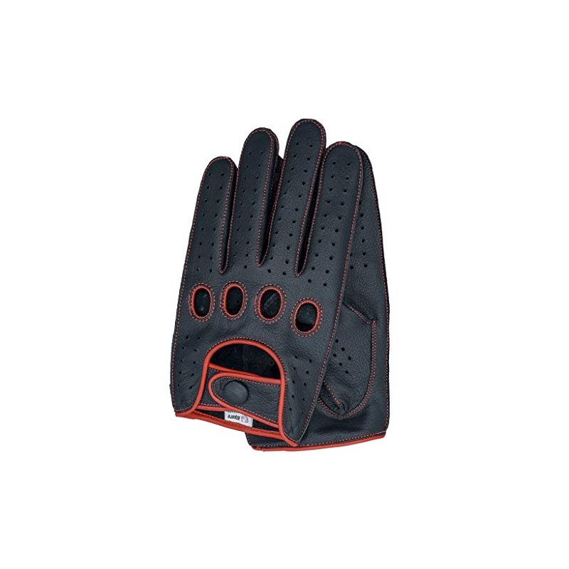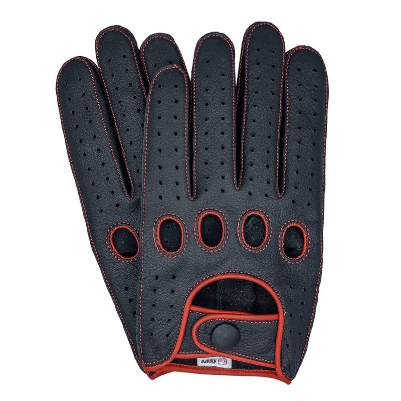 Riparo Genuine Leather Reverse Stitched Full-Finger Driving Gloves (Medium, Black/Red Thread)