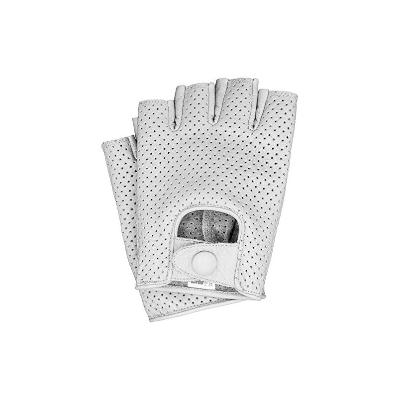 Riparo Mens Leather Full Mesh Fingerless Half-Finger Driving Motorcycle Riding Gloves (White, Medium)