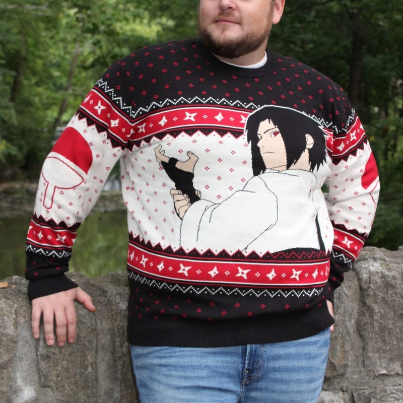 - Show off your love of anime and manga this holiday season with this officially licensed Naruto Shippuden officially licensed ugly Christmas sweater. Be the talk of the office at your next holiday party or the fashionista amongst your anime loving friends and family at your next themed gathering in true Shinobi style.