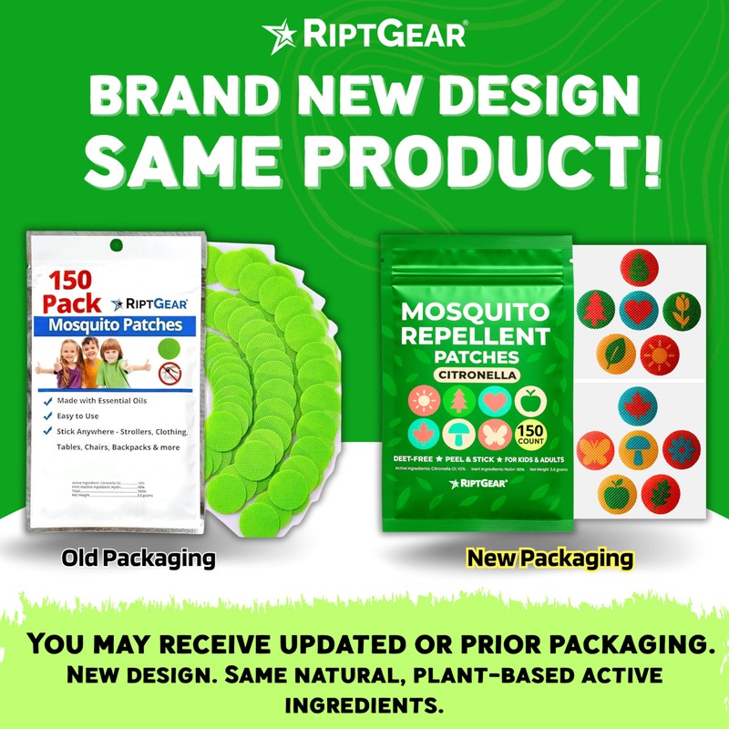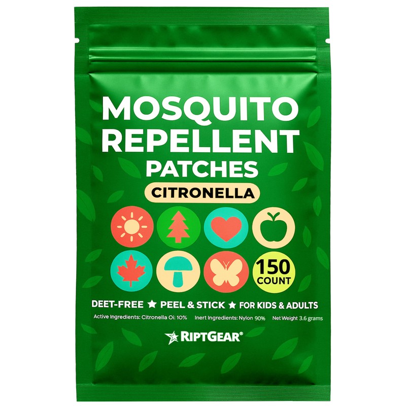 RiptGear Mosquito Patches - 150 Pack of Mosquito Stickers for Kids and Adults, Natural Mosquito Sticker, Citronella Patch Sticks to Any Surface - DEET Free