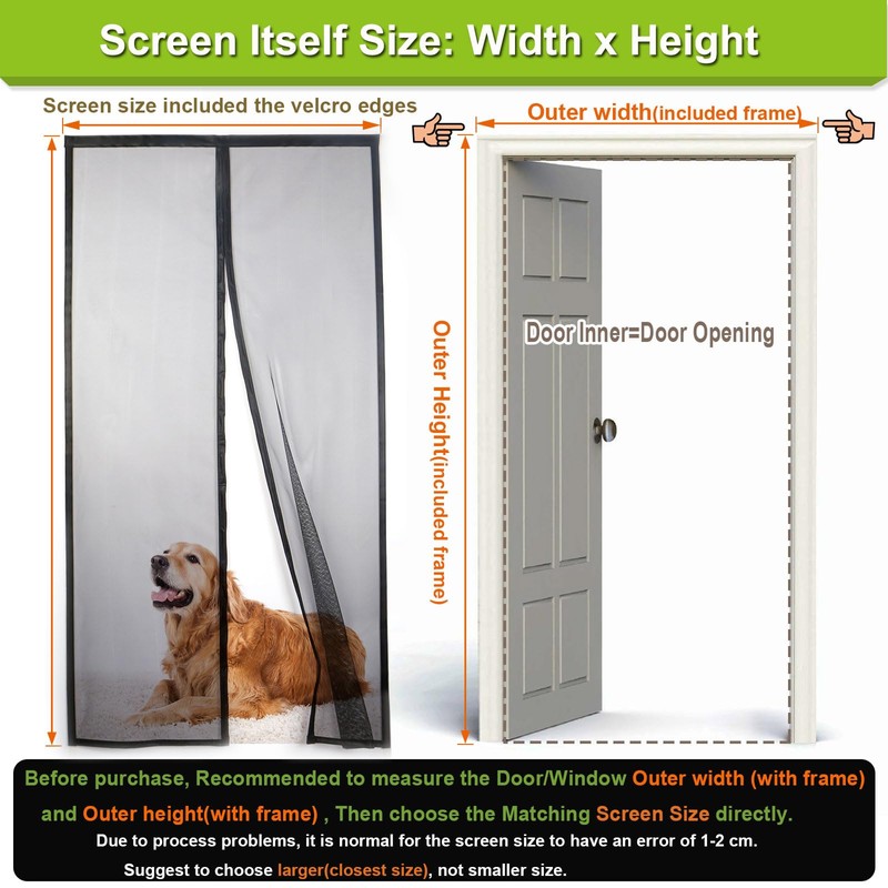 - Auto-closing & Wide Usage: The magnetic screen door has more than 17 pairs of powerful magnets wrapped inside the centre cloth, which work well and close immediately after you pass through, it is friendly to children and pets, hands-free. Ideal to use for front door, sliding door, patio door, french door, basement door, attic door, garage door etc.