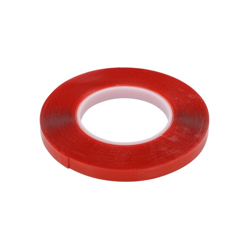 Clear, low-profile, 1mm thick tape. Transparent for plastic and glass
