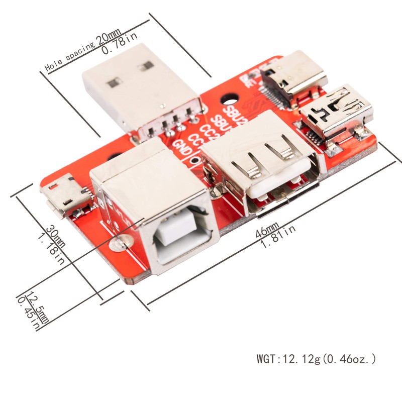 - 8 pins USB Breakout Board: This USB Breakout Board has 8 pins including VCC, D-, D+, GND, CC1, CC2, SBU1, SBU2 for conversion.