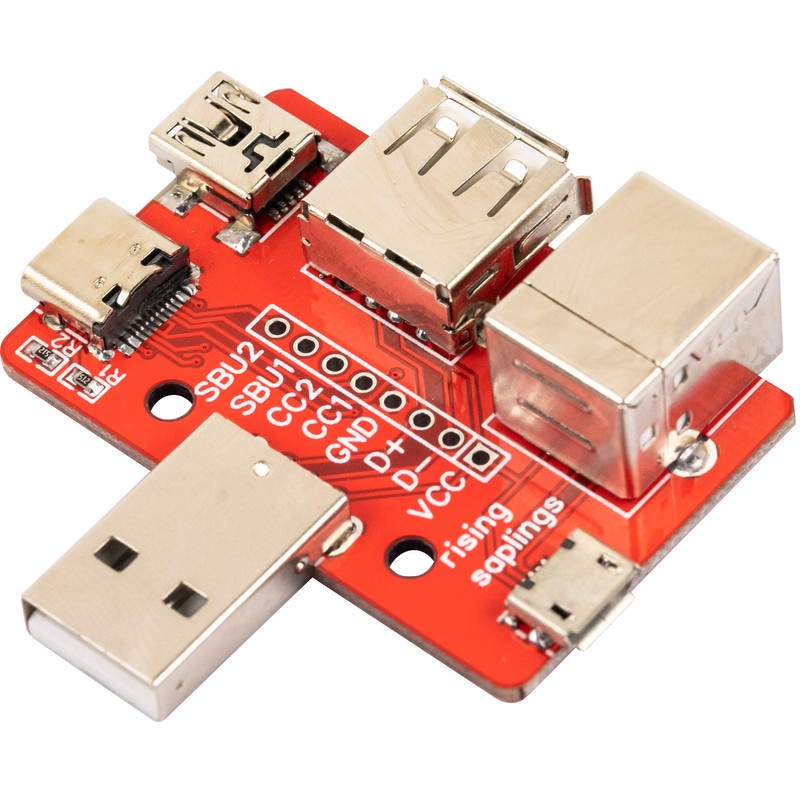 risingsaplings USB Breakout Board 6 in 1 Type A Male to Mini Type-c Micro Type B Female Board