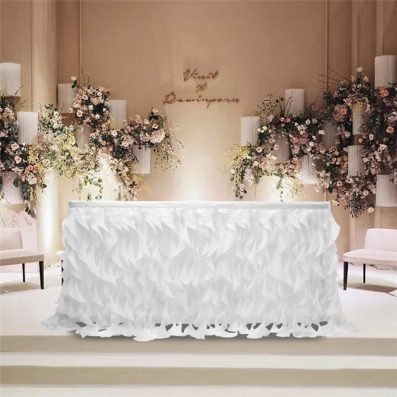 rismart Tulle Table Skirt Curly Willow Tutu Table Cover for Round or Rectangular Table White 77 H x L 275 cm