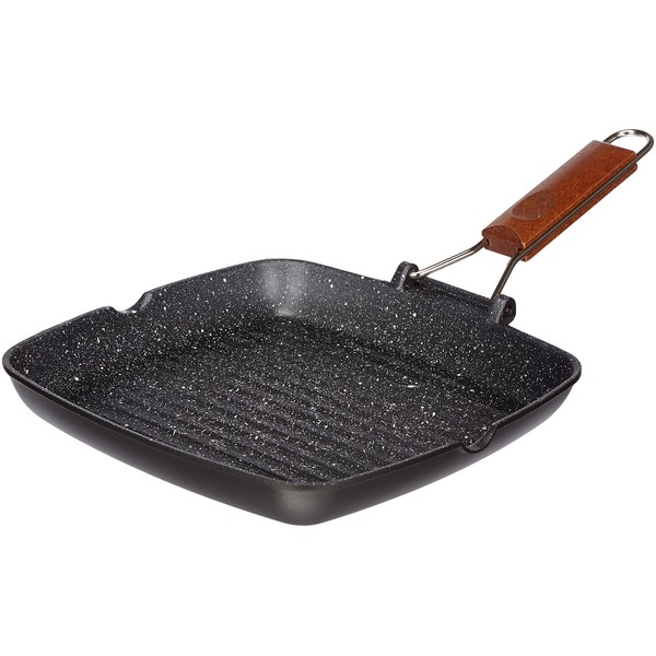 Risoli Granite Griddle Pan with Wooden Handle, 26 x 26 cm