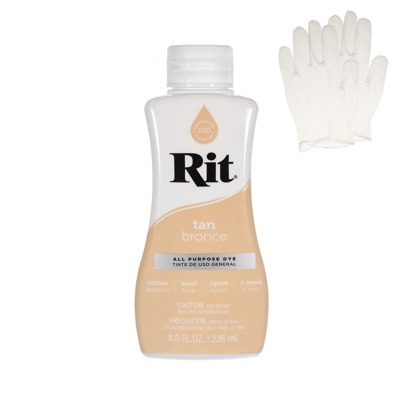 Rit Dye – Liquid Fabric Dye for Crafting, Clothing, and Décor – 8 oz. Bottle – Tan (Gloves Included)