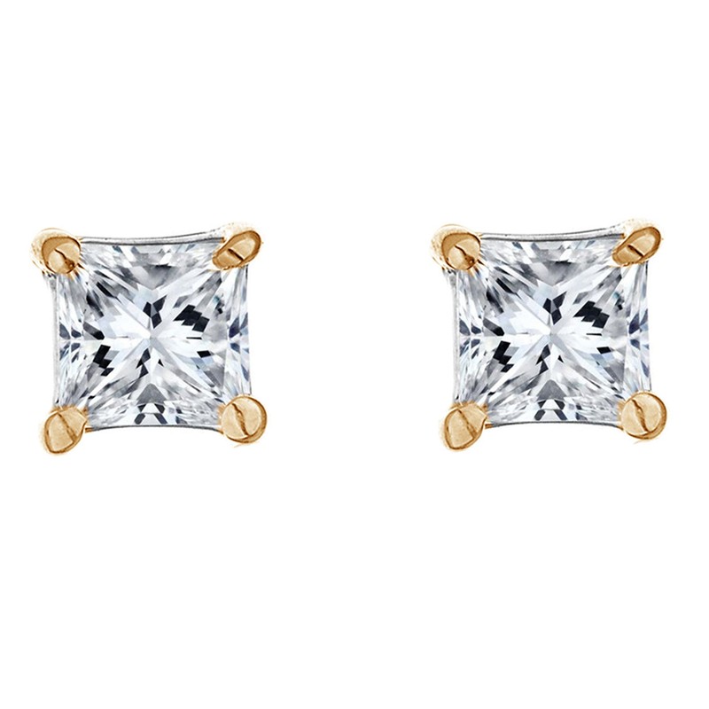 - Genuine 14K yellow gold princess-cut brilliant cubic zirconia screw back stud earrings