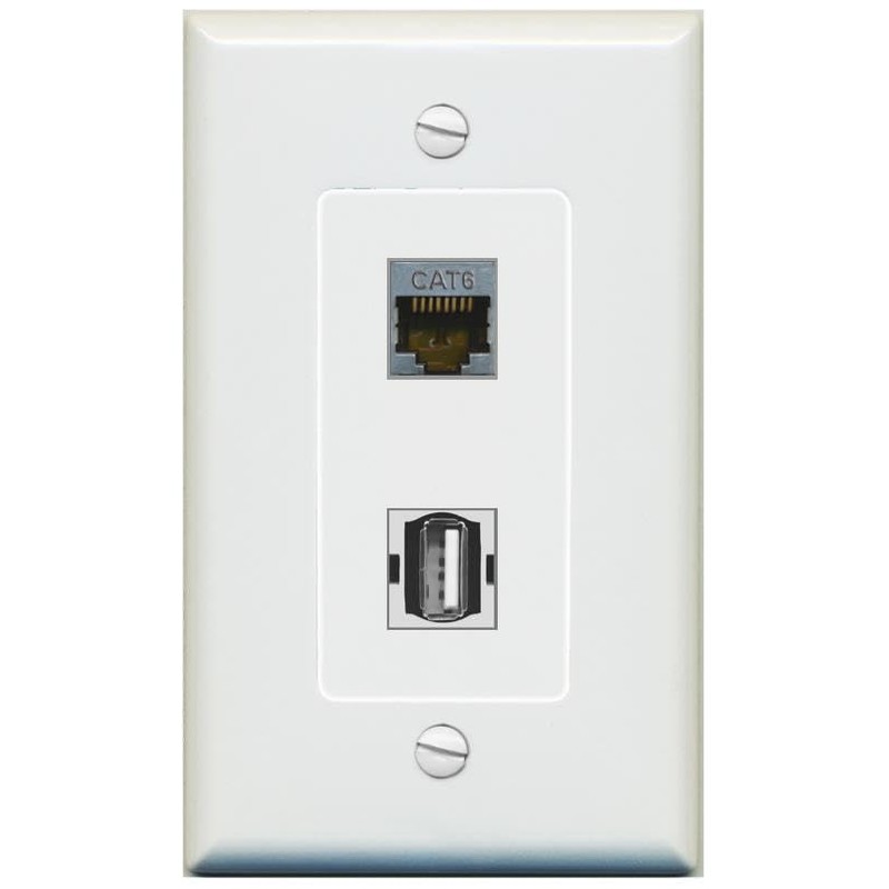 RiteAV 1 Port CAT6-SHIELDED 1 USB2 Jack Coupler Female-Female Decorative Wall Plate [Gray]