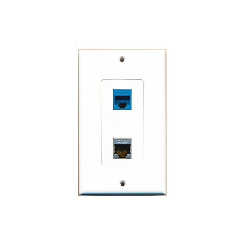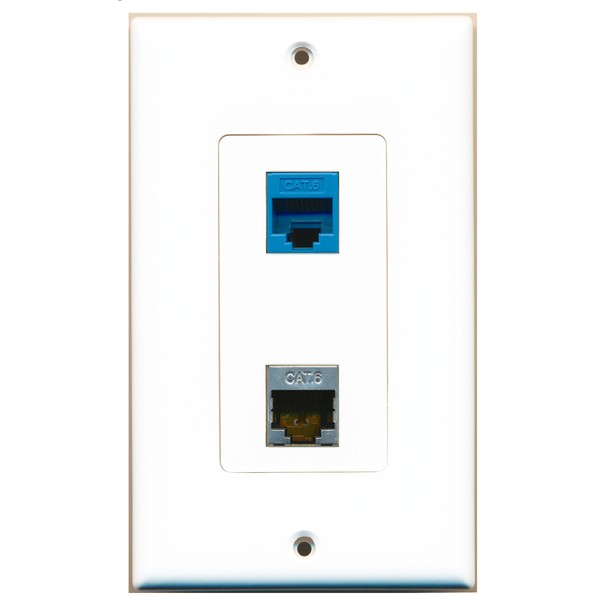 RiteAV 1 Port Shielded Cat6 Ethernet 1 Port Cat6 Ethernet Blue Wall Plate Oversized Jumbo MIDI