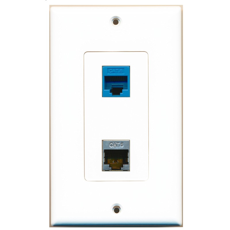 RiteAV 1 Port Shielded Cat6 Ethernet 1 Port Cat6 Ethernet Blue Wall Plate Ove...