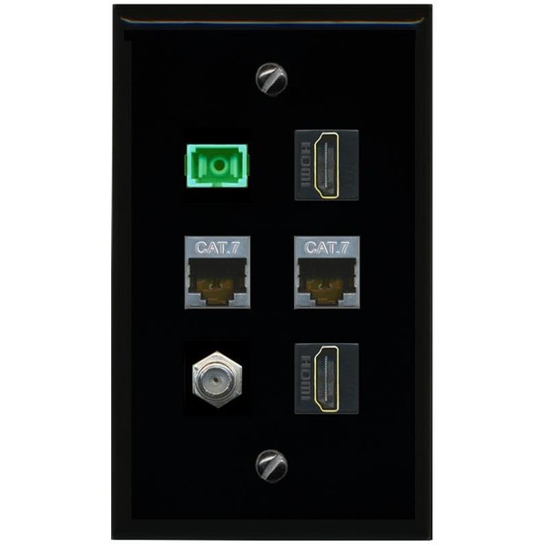 RiteAV 2 CAT7 Coax 2 HDMI SC APC Simplex Fiber Flat/Solid Wall Plate [Black]