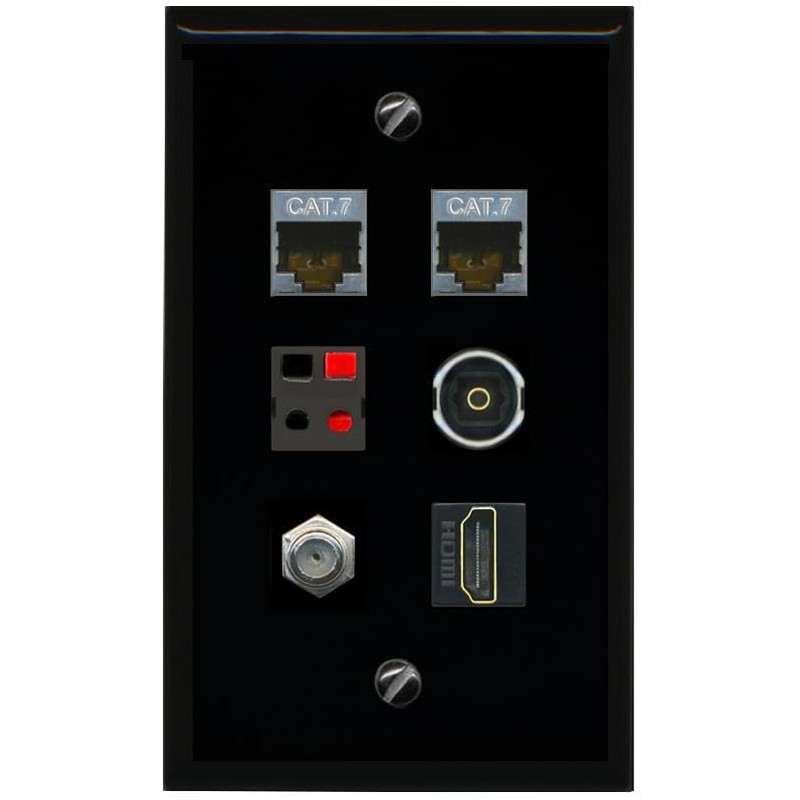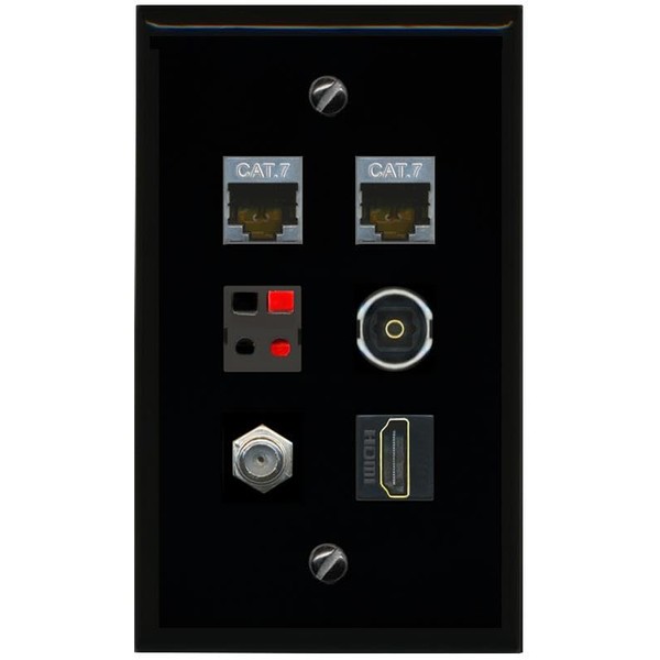 RiteAV 2 CAT7 Coax HDMI Speaker TOSLINK Flat/Solid Wall Plate [Black]