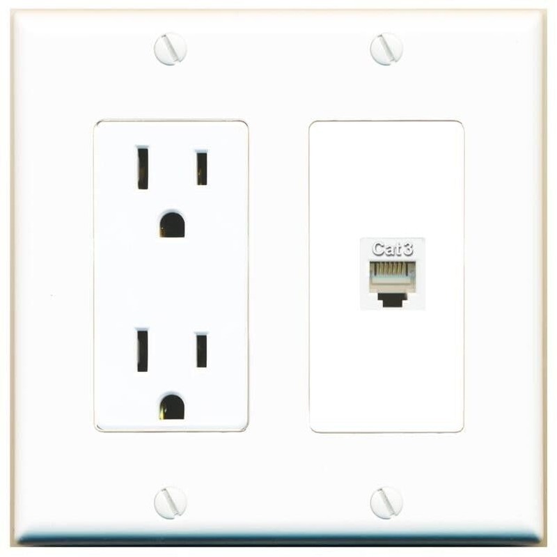 RiteAV [ 2 Gang ] 15 Amp Duplex Power Outlet Port Phone Wire Coupler Jack Wall Plate