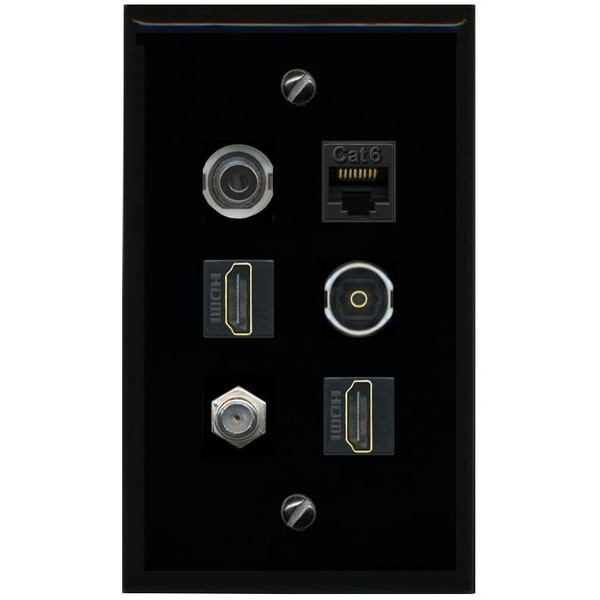 RiteAV 3.5mm CAT6 Coax 2 HDMI TOSLINK Flat/Solid Wall Plate [Black]