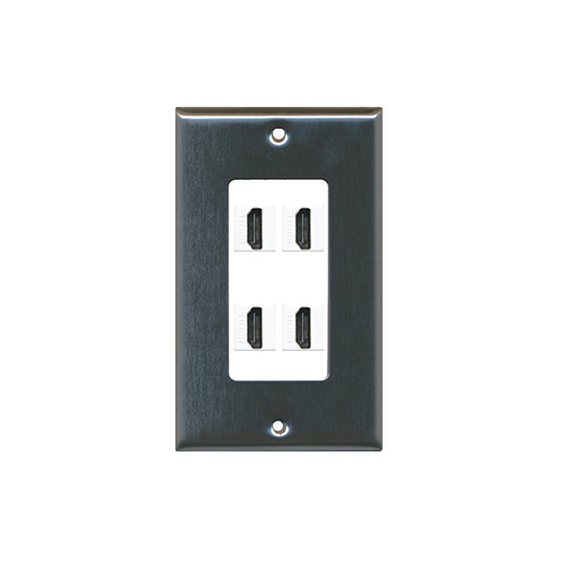 RiteAV - 4 Port HDMI 2.0 Decorative Wall Plate (Stainless Steel & White)