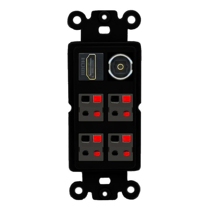 RiteAV 4 Speaker 1 Toslink HDMI Wall Plate - Rocker [Black/Black]