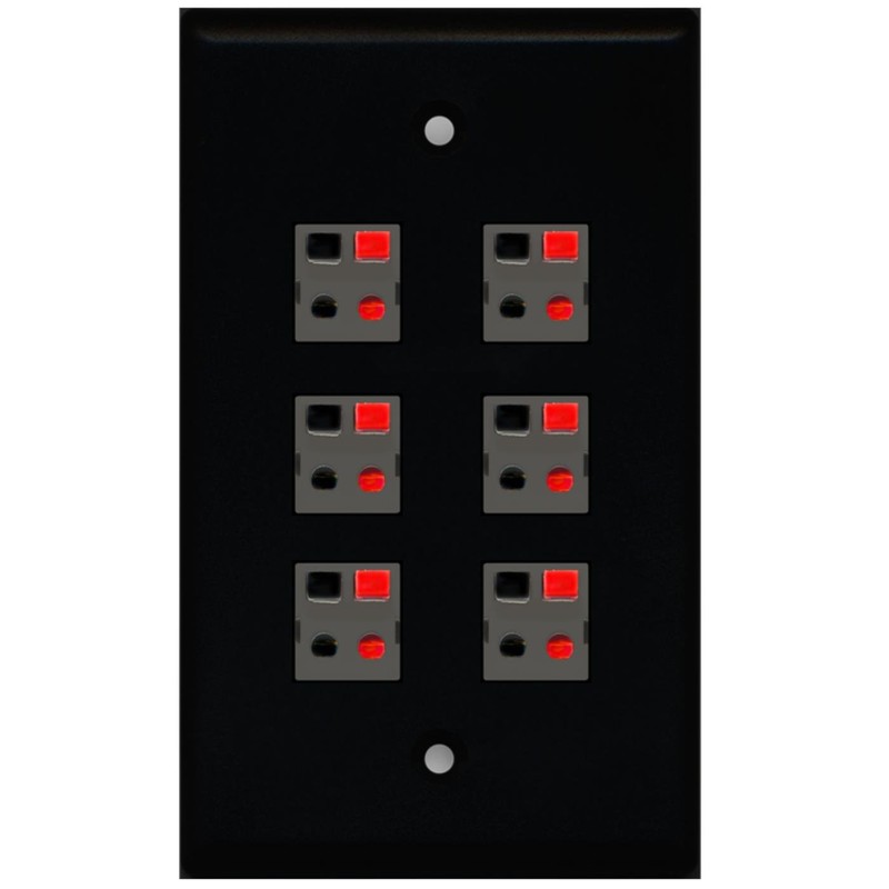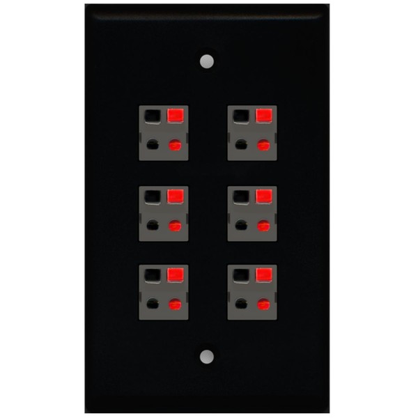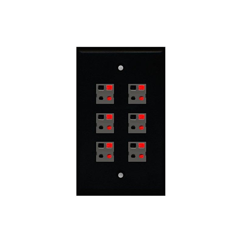 RiteAV 6 Port Speaker Jack Single Gang Wall Plate for Home Theater - Black