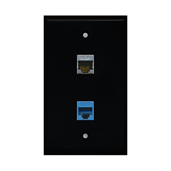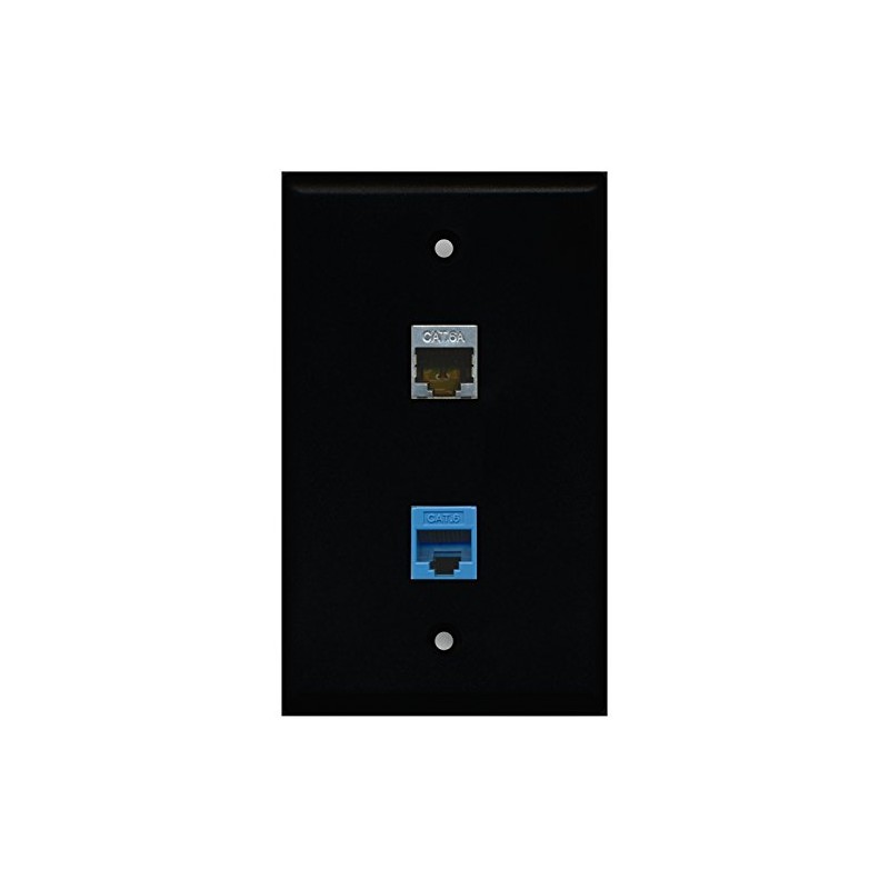 RiteAV - Black 1 Port Cat6 Ethernet Blue 1 Port Cat6a Wall Plate