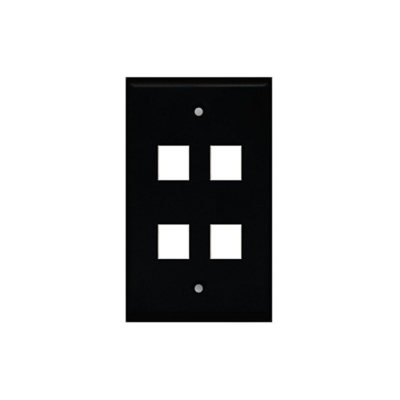 RiteAV Blank Wall Plate for Keystone Jacks - Black 1 Gang 4 Port