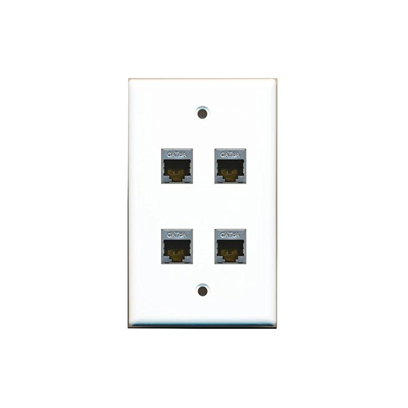 RiteAV CAT 6A 4 Port Shielded Cat6a Wall Plate 1 Gang - White