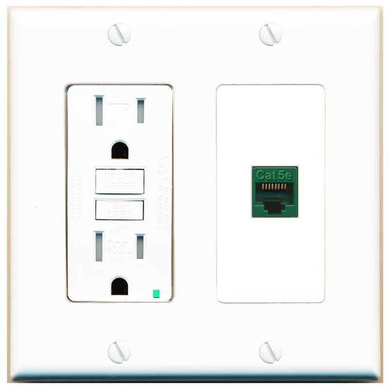 RiteAV CAT5E-GREEN Wall Plate with GFCI Power Outlet [White]