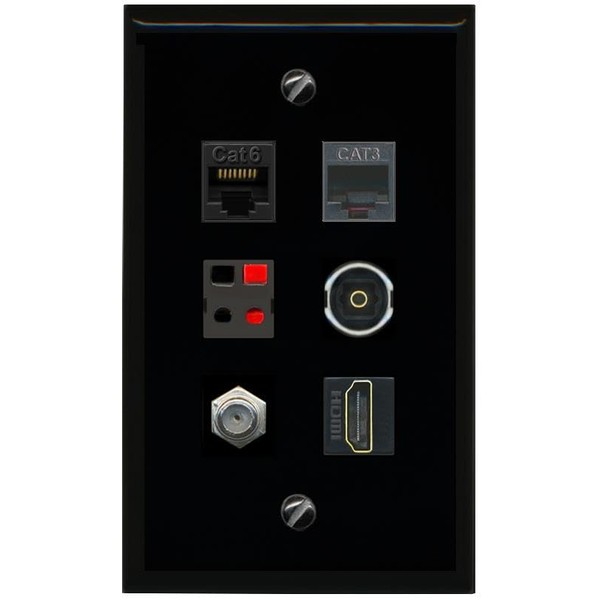 RiteAV CAT6 Coax HDMI Phone Speaker TOSLINK Flat/Solid Wall Plate [Black]