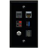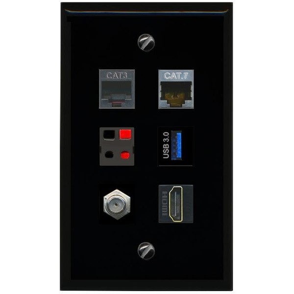 RiteAV CAT7 Coax HDMI Phone Speaker USB 3 Flat/Solid Wall Plate [Black]