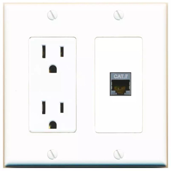 RiteAV CAT7 Decorative Wall Plate with Power Outlet 1 Port [White]