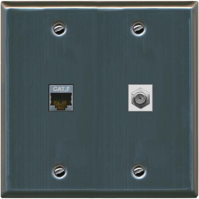 RiteAV Coax and Cat7 Wall Plate - Flat 2 Gang [Stainless Steel]