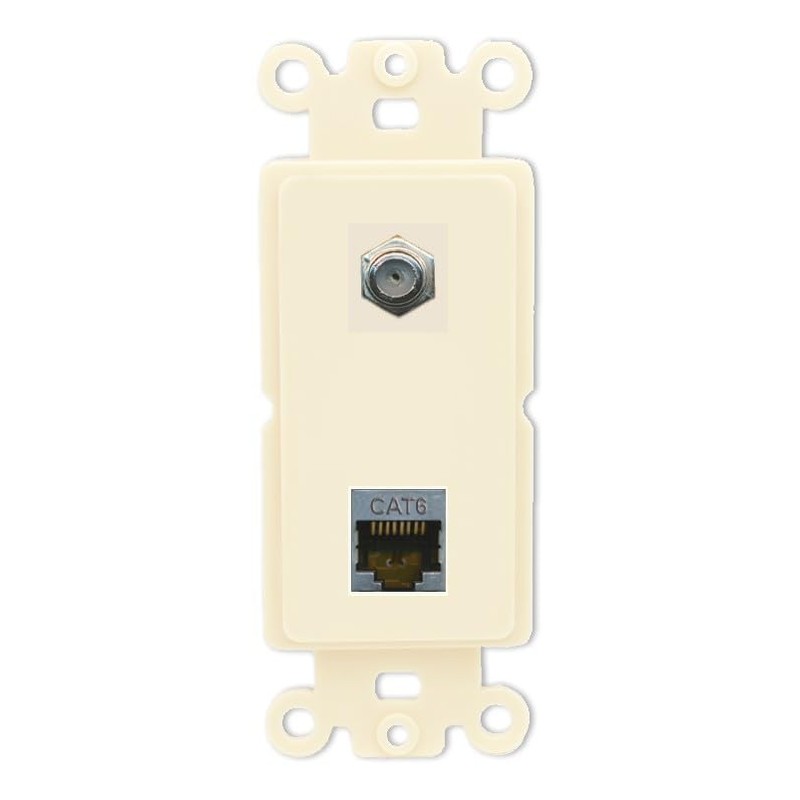 RiteAV - Coax Cat6 Shielded Port Wall Plate Decorative (Rocker) [Light-Almond]