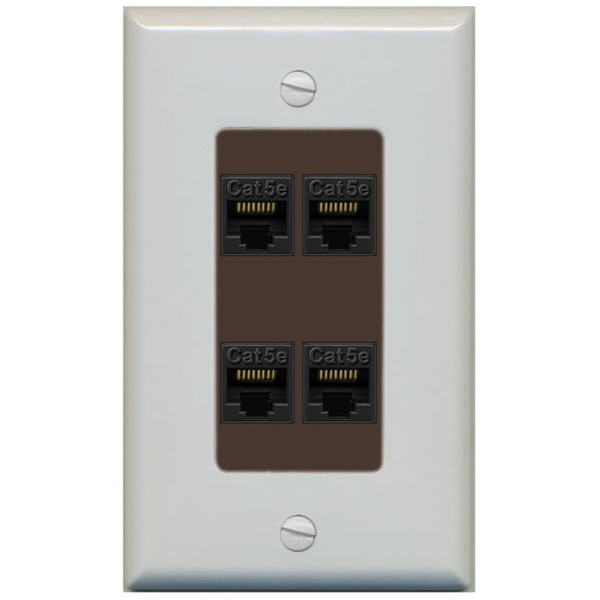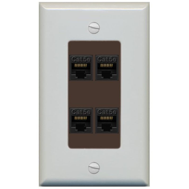 RiteAV Decorative 4 Port Cat5e Ethernet Wall Plate - 1 Gang Gray/Brown