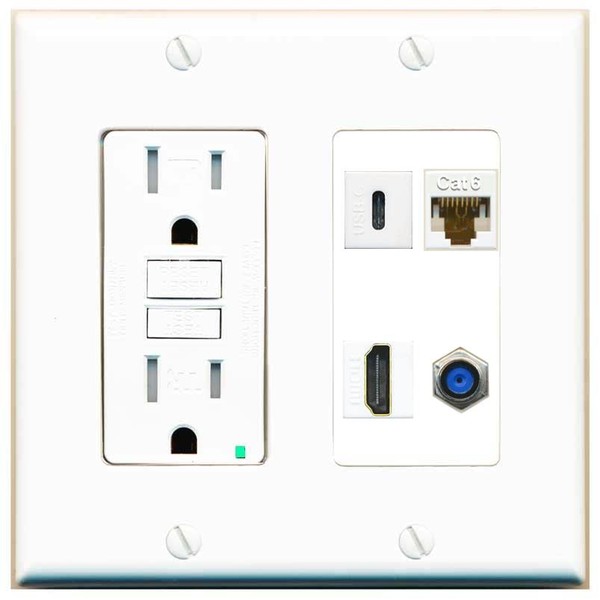 RiteAV USBC HDMI Cat6 Coax F81 Wall Plate - GFCI [White/White]