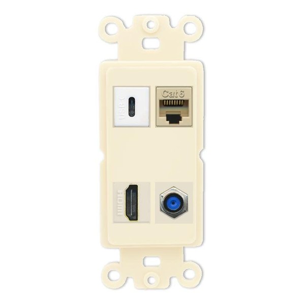 RiteAV USBC HDMI Cat6 Coax F81 Wall Plate - Rocker [Light-Almond]
