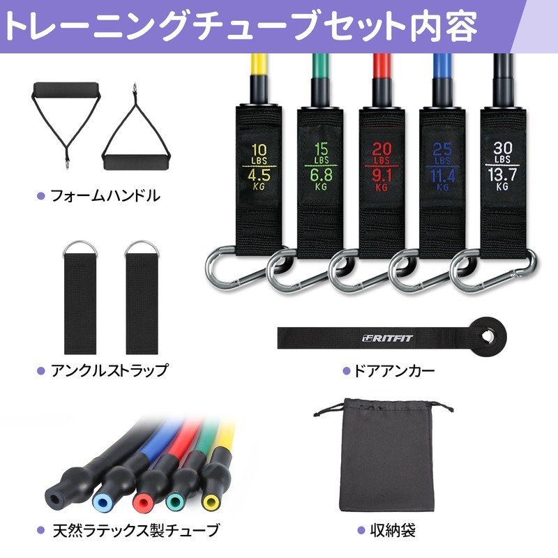 RITFIT Training Tube Set, Set of 5 Different Strength, Fitness Tubes, Muscle ...