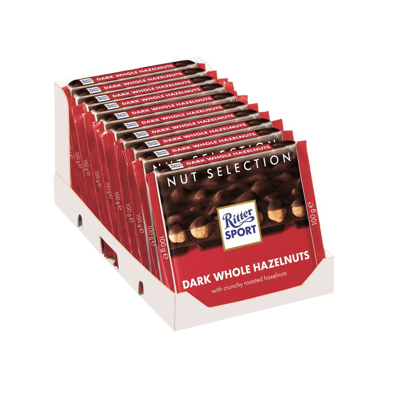 Ritter Sport Chocolate Bars with Nuts (Dark Chocolate with Hazelnuts, 3.5 Ounce (Pack of 10))