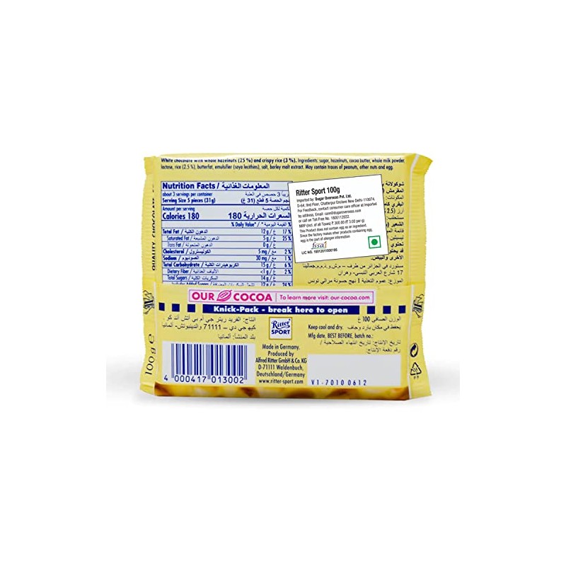 Ritter Sport White Chocolate Hazelnut Bar-Pack of 3