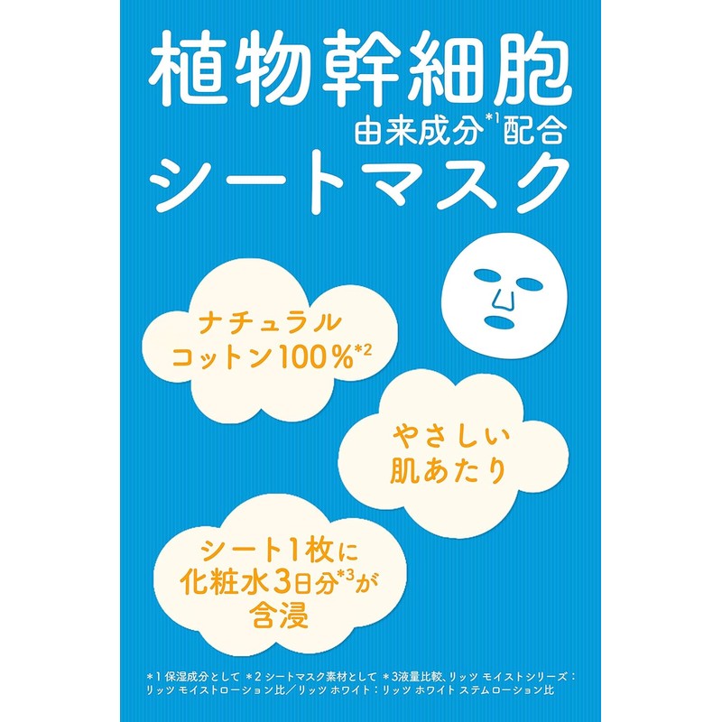 A sheet mask containing vitamin C derivative (*1) and white plant stem cell derived ingredients (*2) that can be easily used every day. The original mask is made of 100% cotton, which adheres closely to the skin and slowly charges with moisture, leaving the skin plump and supple.