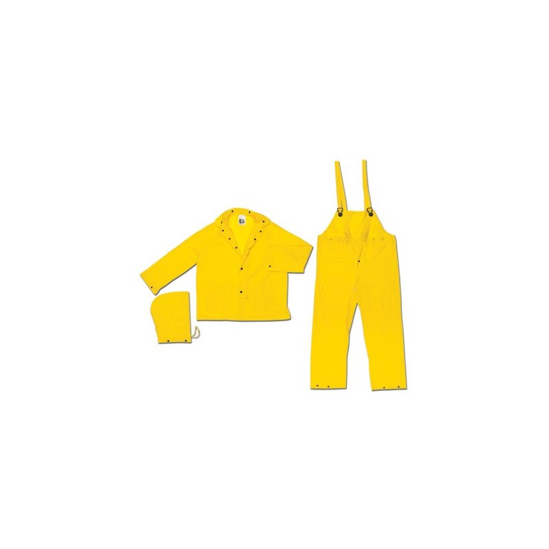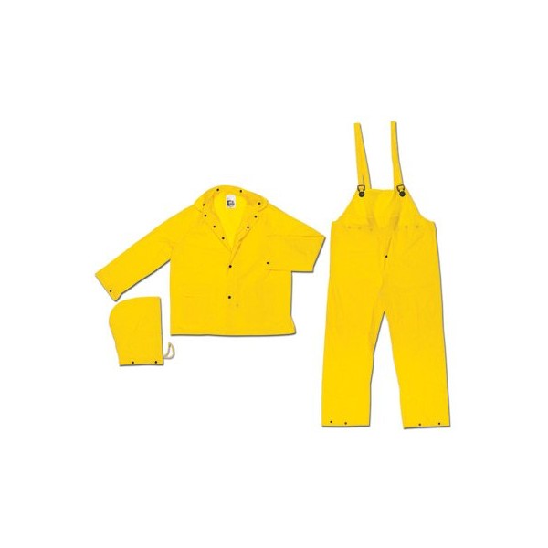 River City Garments(R) 2X Yellow Squall .20 mm PVC Disposable 3 Piece Rain Suit (Includes Jacket With Front Snap Closure, Detached Hood And Snap Fly Bib Pants)