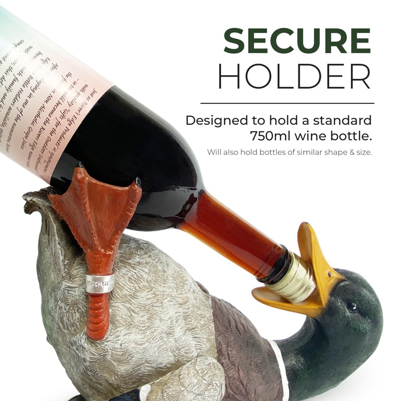 Rivers Edge Products 750ml Wine Bottle Holder - Hand-Painted Poly Resin Animal Kitchen Decor - Unique, Rustic Home Decor for Countertop and Bar - Wine Accessories for Wine Lovers