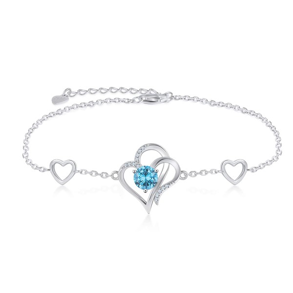 RIVIKO Love Heart Charm Bracelet For Women 925 Sterling Silver With Zirconia Birthstone Bracelets Adjustable Link for Mother Wife Girls Sister Birthday Christmas Mother's Day Jewelry Gift, Sterling