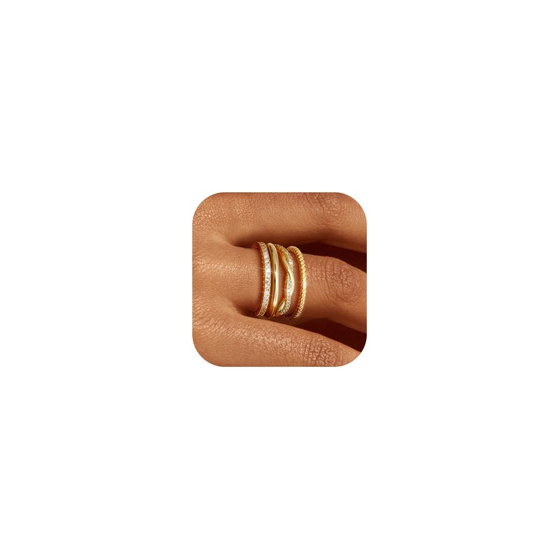 - Gold stacking rings: petite gold stacking rings for women set comes with 4 pieces rings in different designs. Gold and silver colours to choose from. Women's gold rings that do not tarnish are simple and fashionable. Stackable rings are suitable for most people
