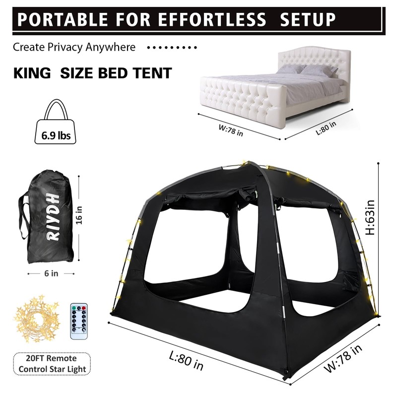 - Sleep Sanctuary: The bed tent with blackout 80% and noise reduction, the tent ensures a peaceful and uninterrupted sleep, can't see inside from the outside, perfect for creating your personal sleep oasis.