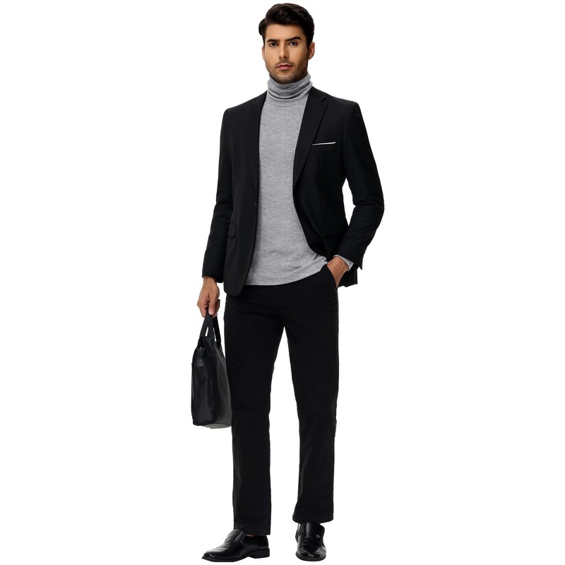 - Comfortable Knitted Fabric: This is a casual turtle neck for men. Made of 65% polyester, 30% rayon, and 5% spandex, it is comfortable and breathable. It is knitted and is a foldable turtleneck. Your neck will not feel itchy because it is soft enough. In addition, this mock neck top also achieves a fit effect. In spring, fall or winter, you can wear it with other clothes or alone. This is a basic men's turtleneck long-sleeve shirt in your wardrobe