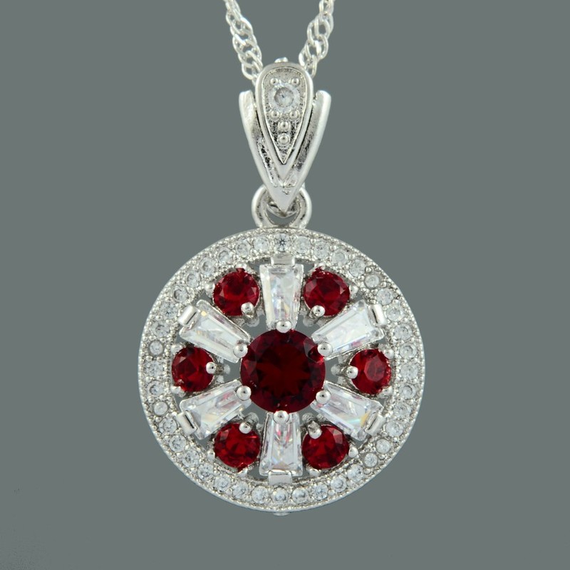 RIZILIA Blossom Pendant with 45cm(18") Chain & Round Cut Gemstones CZ [Red Ruby] in 18K White Gold Plated, Simple Modern Elegance