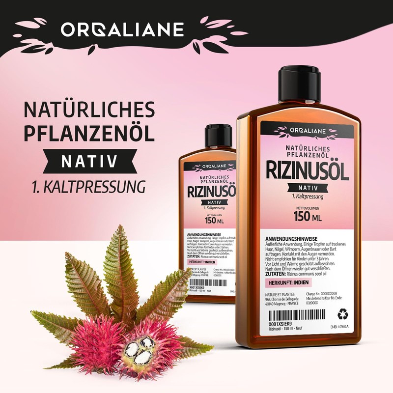 Rizinusöl 900 ml - 100% nativ - kalt gepresst - Ricinus Communis - Orgaliane