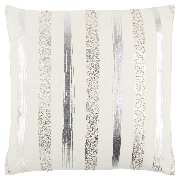 Rizzy Home T13304 Decorative Pillow, 20"X20", Silver/White