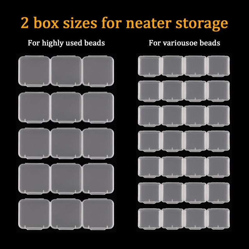 • Larger boxes for high usage pieces - Apart from the 28 standard grids, there are 15 larger ones to house your highly used beads, making the bead container more organized and easier to access